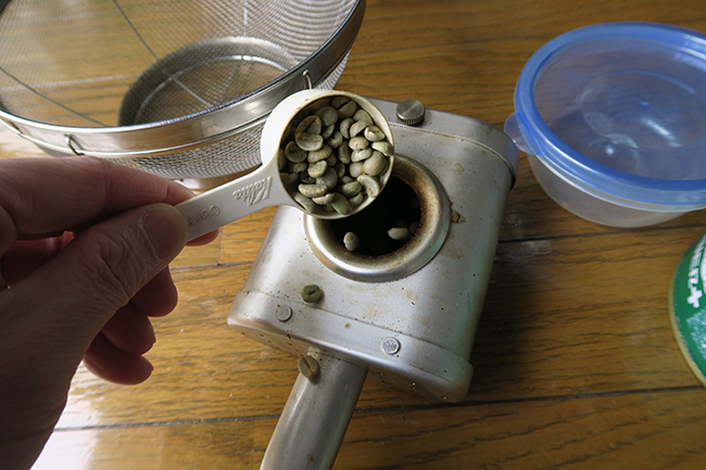 ▲放置すると焙煎が進行するのでドライヤーで素早く冷まします。